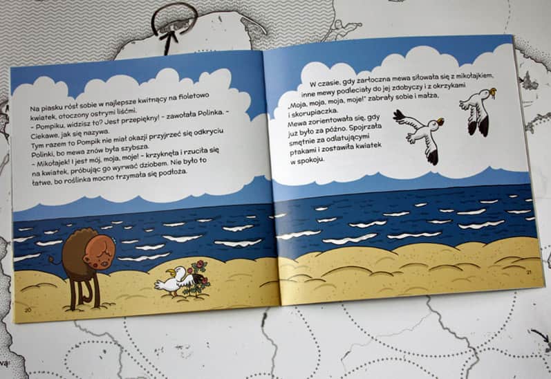 A może nie tylko mewy chciałyby mieć wszystko dla siebie? Zgadnijcie, kto znajdzie bursztyn – mała Polinka, czy starszy brat Pompik?