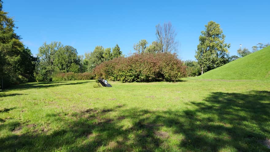 - ścieżki wokół kopca i prowadzące na jego szczyt to wąskie, wydeptane ścieżki gruntowe, niedostępne na wózek