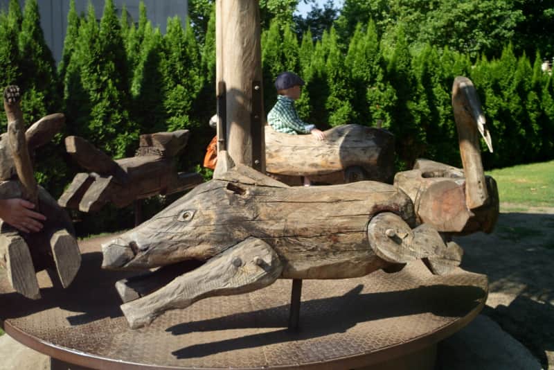 Wszyscy znają piosenkę o karuzeli na Bialanach - jakież było nasze zdziwienie, gdy jakiś czas temu wybraliśmy się na zwiedzanie zespołu klasztornego kamedułów na Bielanach w Warszawie i znaleźliśmy uroczą drewnianą karuzelę. Nasz wówczas trzyletni synek Fryderyk mógł zasiąść w łabędziu, osiołku, "dzikim dziku" i... oj "jak przyjemnie, gdy świat kreci się w koło...". Bardzo polecamy to miejsce, dużo zieleni, tras spacerowych po Lesie Bielańskim.