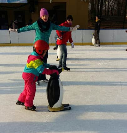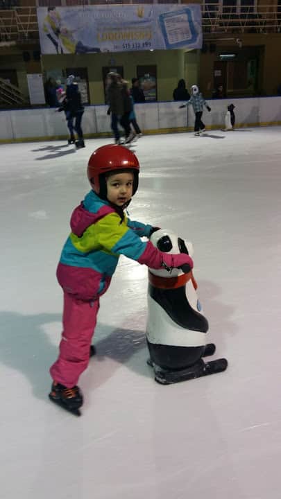 Na terenie lodowiska wypożyczalnia łyżew oraz pingwinków do nauki jazdy.