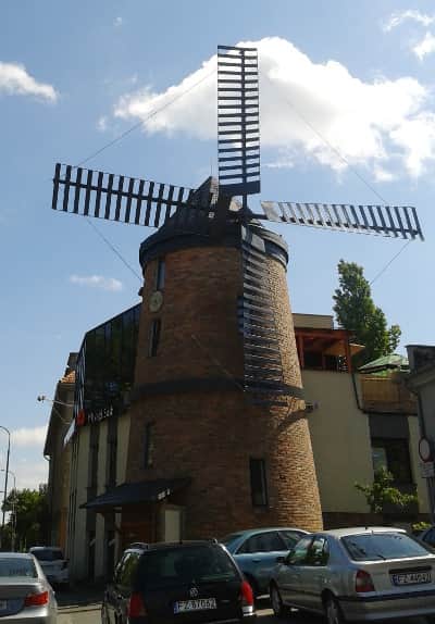 Wiatrak znajduje się bardzo blisko głównego przystanku PKS, ul. Chopina to ul. równoległa do ul. Bohaterów Westerplatte - głównej arterii ZG.