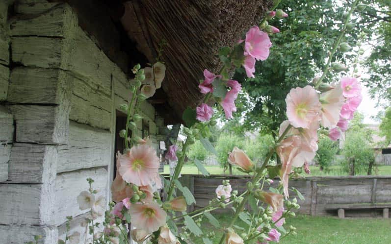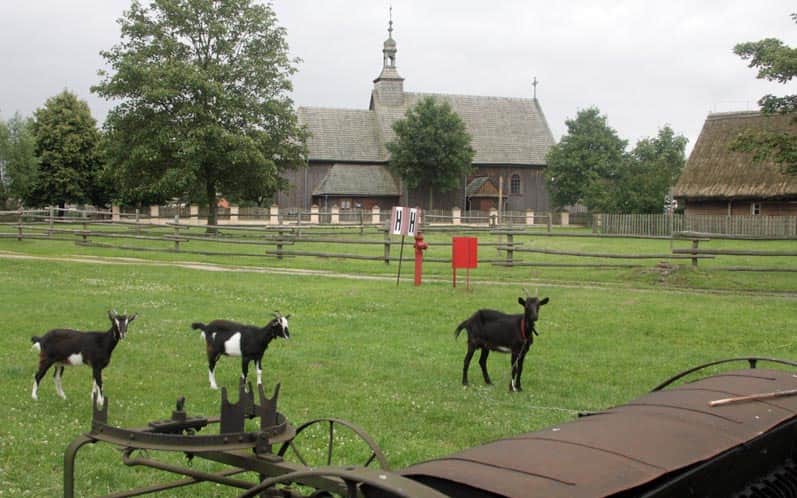 Do większości obiektów możemy wejść i zwiedzić również wnętrza. Nam szczególnie spodobały się zadbane podwórka z kwiatowymi i warzywnymi ogródkami oraz… pasące się na terenie parku zwierzęta: owce i kozy!