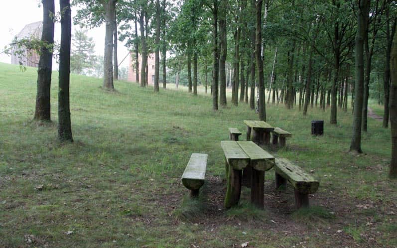 Przy wejściu – niewielka karczma (proste dania obiadowe, napoje, przekąski). W pobliżu wiatraka, w zacienionym zagajniku – drewniane stoliki i ławeczki.