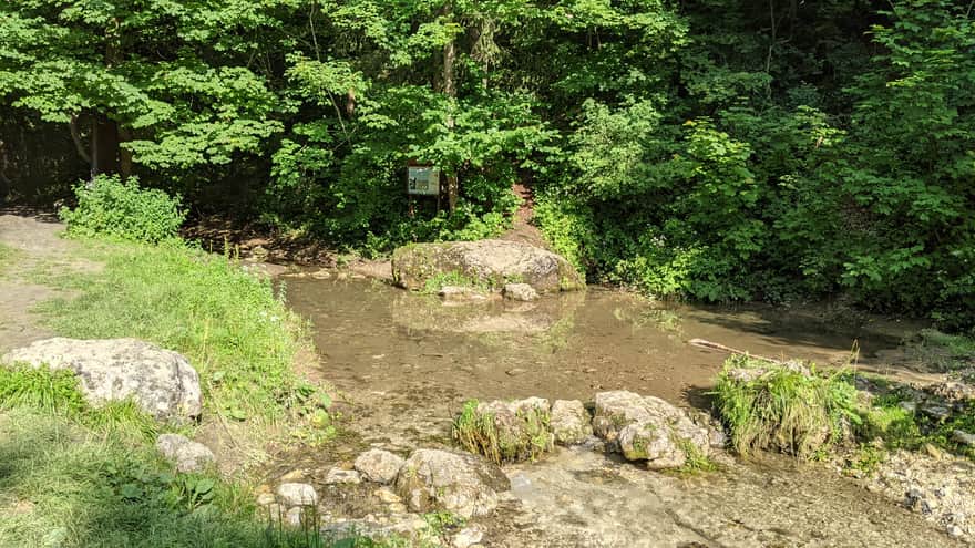 Idąc dalej doliną docieramy do źródła Będkówki - jest to główny wypływ dający początek potokowi. Ze źródła wypływa od około 50 do nawet 150 litrów wody na sekundę! Takie źródło o dużej wydajności, zasilane przez wody podziemne, z którego woda wypływa pod dużym ciśnieniem to wywierzysko.
