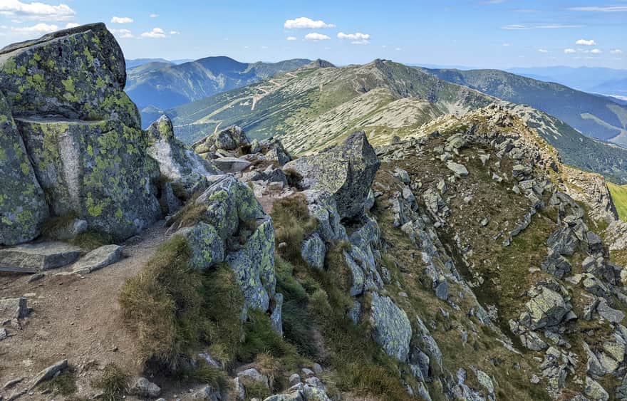 Przepiękne panoramy towarzyszą nam podczas całej wędrówki: idziemy cały czas odkrytym, skalistym grzbietem (w słoneczny dzień pamiętajmy zatem też o nakryciu głowy i kremach z filtrem).