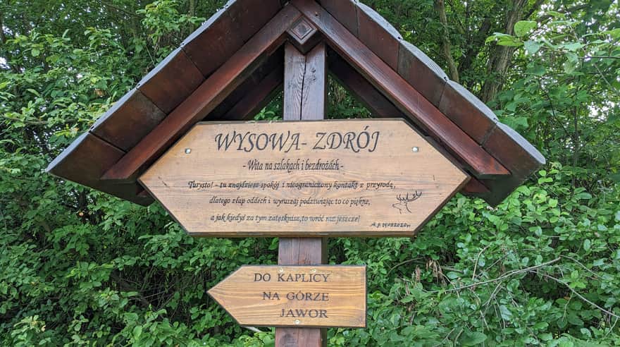 Z Wysowej-Zdrój do kaplicy i punktu widokowego na Górze Jawor prowadzi wygodna, szeroka droga. Możemy się tu wybrać z wózkiem, czy rowerem (chociaż pod koniec będzie "pod górkę", a ostatnie kilkadziesiąt metrów jest dosyć kamieniste).