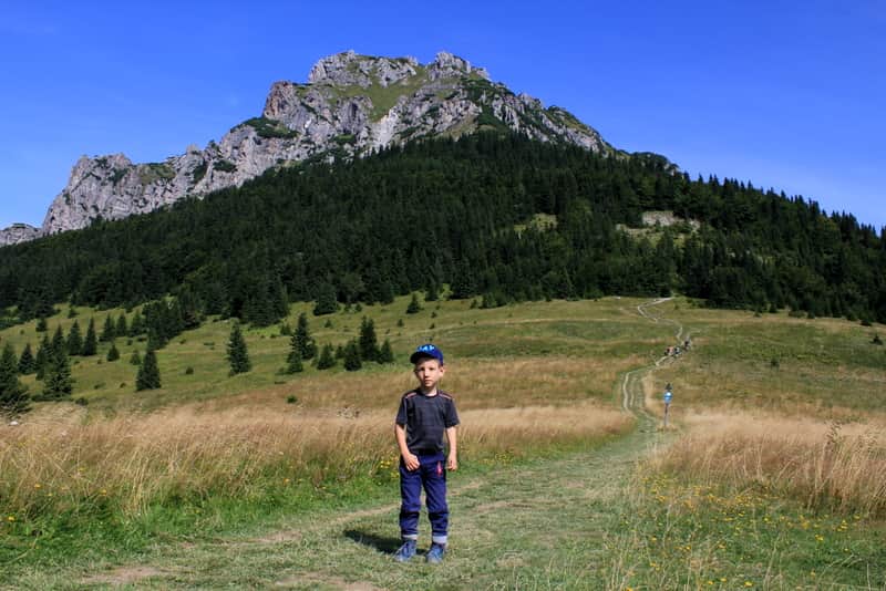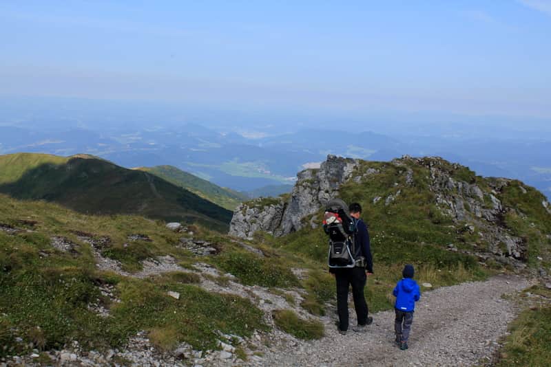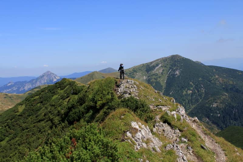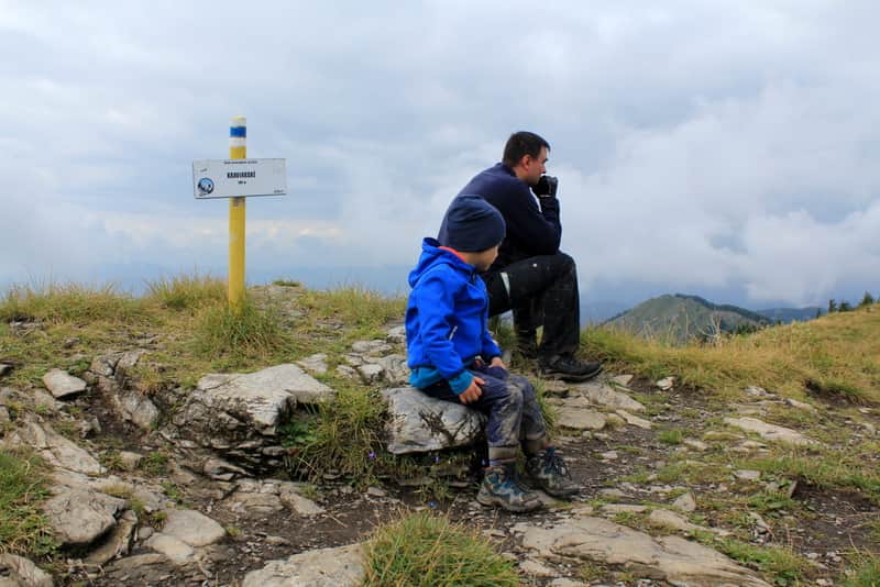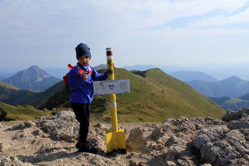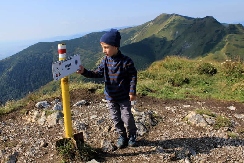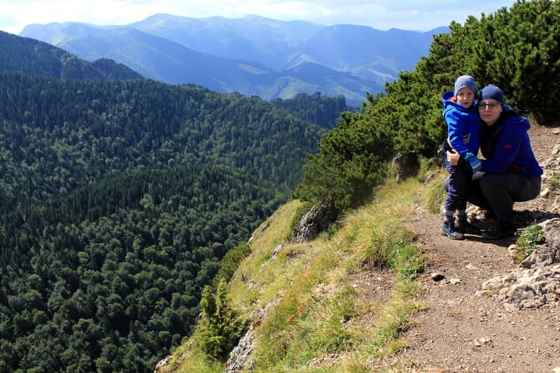 Ruszyliśmy zielonym szlakiem ze wsi Stafanova. Kiedy tylko zaczęły się skały Miłosz skorzystał z nosidła. Trasa od przełęczy Medziholie jest trudna dla każdego. A co dopiero dla kogoś z dzieckiem na plecach. Kiedy weszliśmy na sam szczyt, kilkunastu turystów biło gromkie brawa dla taty Miłosza. To co zrobili niewątpliwie na długo pozostanie w naszym sercu. Pozostało jeszcze zejście do przełęczy Medzirozsutce, które Miłosz również pokonał w nosidle, a dalszą trasę zielonym i żółtym szlakiem z przełęczy już samodzielnie. I tu mała niespodzianka – trzeba było za nim biec!